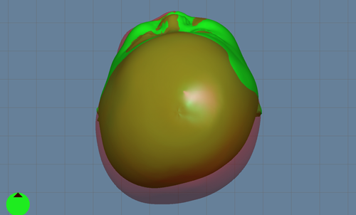 黄色がヘルメット治療前、ピンクがヘルメット治療後。 |