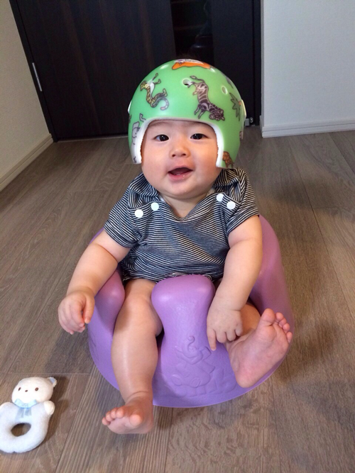 ヘルメット治療は頭が柔らかい生後4か月~7か月ごろに開始して、半年間で完了します。ヘルメットは300g程度と非常に軽く、赤ちゃんが不快になることはほぼありません。ヘルメット療法を行わない場合も、向き癖予防の指導を行います。